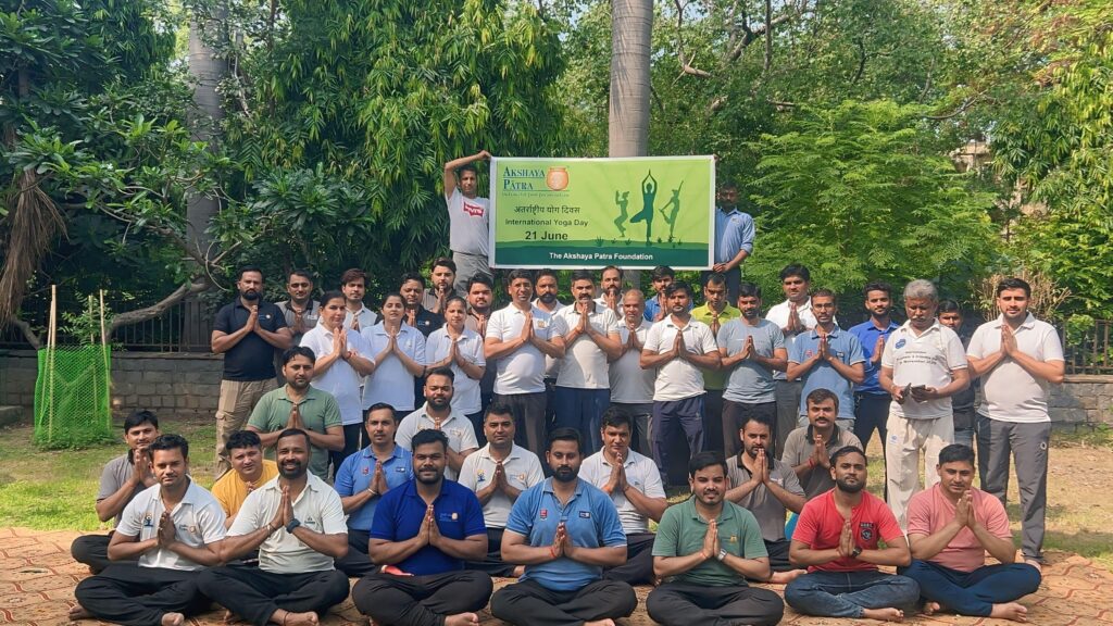 नई दिल्ली। अंतरराष्ट्रीय योग दिवस के अवसर पर शनिवार को अक्षय पात्र फाउंडेशन के दिल्ली-एनसीआर क्षेत्र के पांचों केंद्रीयकृत रसोईघर के कर्मचारियों ने सामूहिक योग अभ्यास किया। यह अभ्यास अक्षय पात्र के कर्मचारियों के स्वास्थ्य और कल्याण को बढ़ावा देने के लिए किया गया।