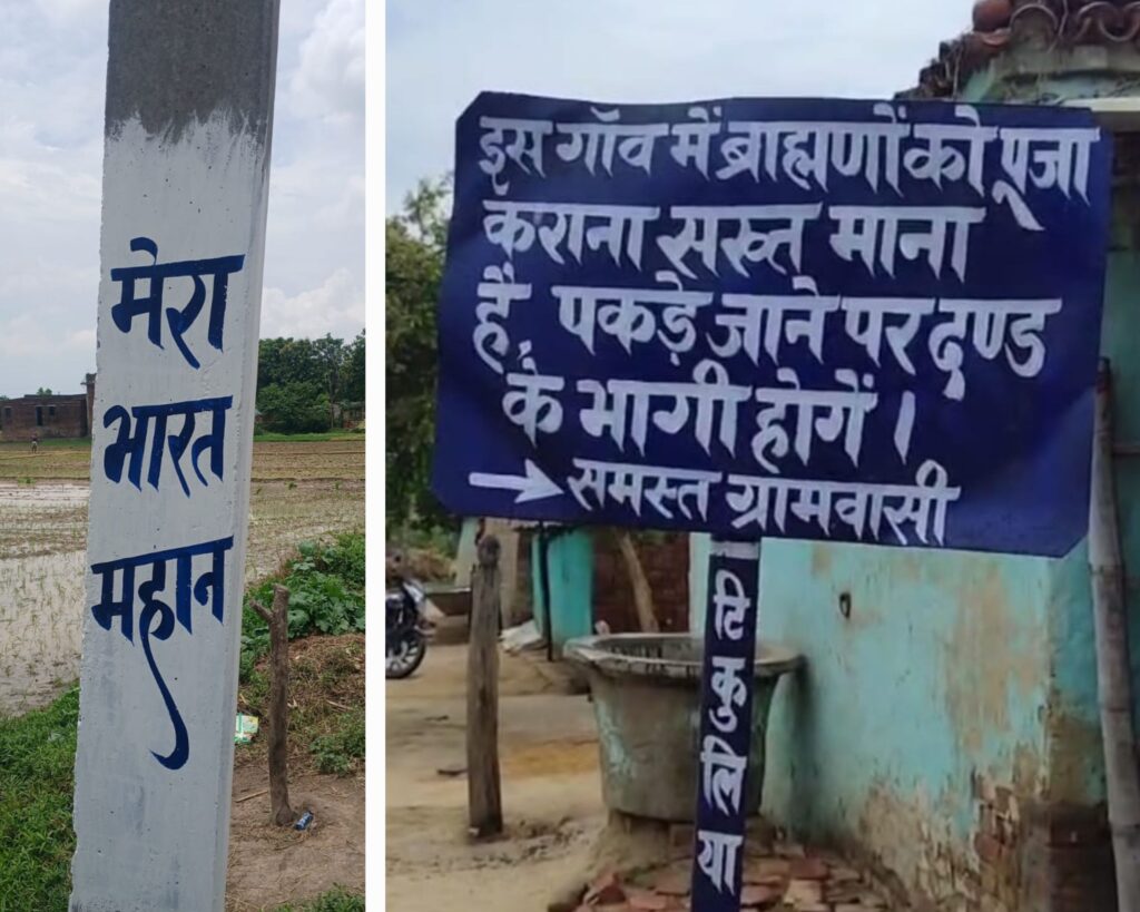 दरअसल पूर्वी चंपारण के आदापुर प्रखंड के बखरी पंचायत के एक जाति बहुल टिकुलिया गांव की दीवारों, खंभों और अन्य सार्वजनिक स्थानों पर लिखा गया था,इस गांव में ब्राह्मणों द्वारा पूजा-पाठ करना सख्त मना है । नियम तोड़ने पर दंड भुगतना होगा। गांव के एक बुजुर्ग ने बताया है कि कुछ लोग ऐसे पोस्टर लिखकर सामाजिक सौहार्द बिगाड़कर राजनीतिक लाभ उठाने की फ़िराक़ में थे। लेकिन पुलिस प्रशासन की सख़्ती से इनके मंसूबों पर पानी फिर गया।