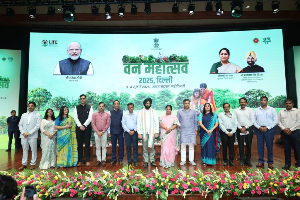 नई दिल्ली। मुख्यमंत्री रेखा गुप्ता ने गुरुवार को भारत मंडपम में दो दिवसीय वन महोत्सव का शुरूआत की। मुख्यमंत्री ने पीबीजी ग्राउंड में प्रधानमंत्री नरेन्द्र मोदी द्वारा प्रारंभ किए गए ‘एक पेड़ मां के नाम – अभियान 2.0’ की भावना को आत्मसात करते हुए पौधा रोपित किया और दिल्लीवासियों को इस अभियान से जुड़ने का आह्वान किया। इस अवसर पर कैबिनेट मंत्री प्रवेश साहिब सिंह, मनजिंदर सिंह सिरसा एवं सांसद बांसुरी स्वराज की मौजूद रहे।