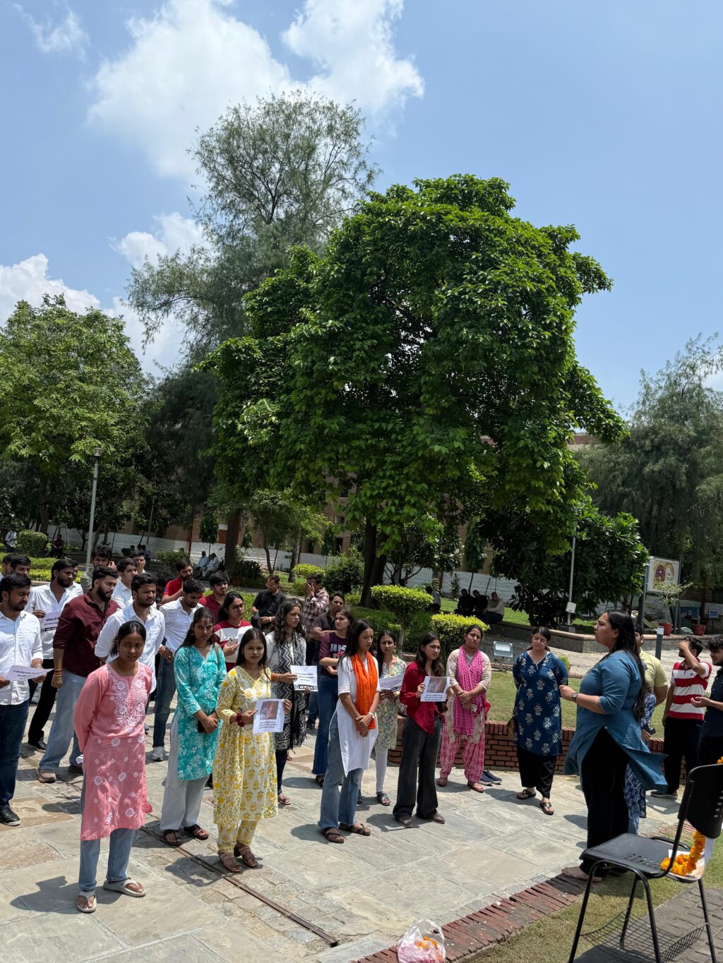 इस अवसर पर बड़ी संख्या में दिल्ली विश्वविद्यालय के छात्र-छात्राओं ने भाग लिया और मोमबत्तियां जलाकर मृतका सौम्याश्री बिश्री को श्रद्धांजलि अर्पित की।