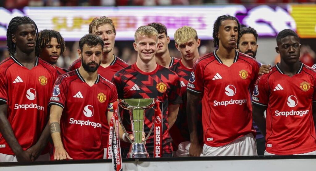 वाशिंगटन, 4 अगस्त । मैनचेस्टर यूनाइटेड ने रविवार रात एवर्टन के खिलाफ 2-2 से ड्रॉ खेला और प्रीमियर लीग समर सीरीज 2025 का खिताब अपने नाम किया। इस ड्रॉ के साथ यूनाइटेड ने अमेरिका में हुई राउंड-रॉबिन प्री-सीजन सीरीज में कुल सात अंक लेकर शीर्ष स्थान हासिल किया। इससे पहले टीम वेस्ट हैम को 2-1 और बॉर्नमाउथ को 4-1 से हरा चुकी थी।