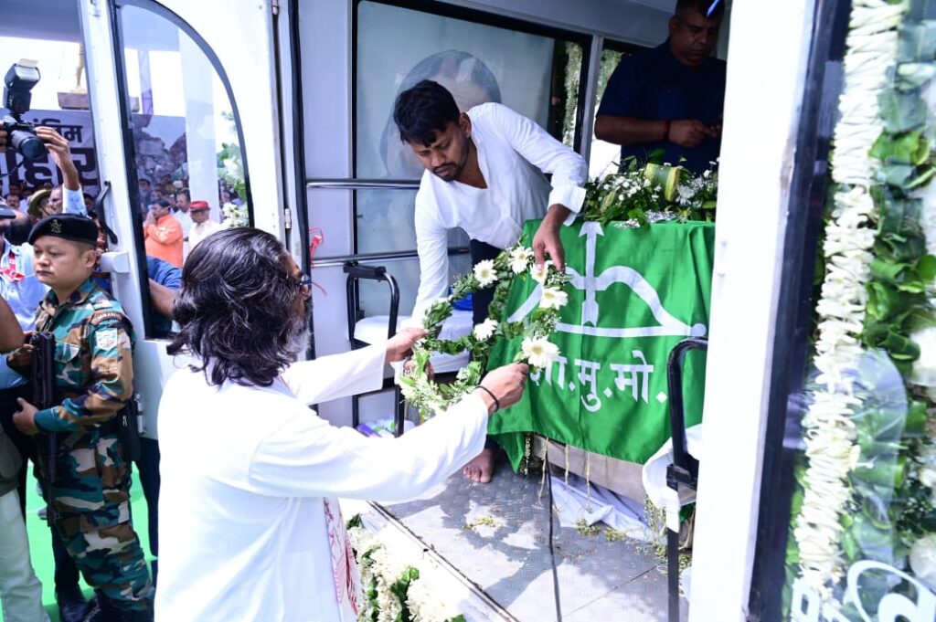 इससे पहले दिशोम गुरू की अंतिम यात्रा जब मोरहाबादी स्थित उनके आवास से विधानसभा के लिए निकली, तो फिजां पर वीर शिबू अमर रहे का नारा गूंजने लगा। जैसे-जैसे काफिला विधानसभा की ओर बढ़ता गया, गुरुजी के दर्शन के लिए लोगों की भीड़ उमड़ती गई।