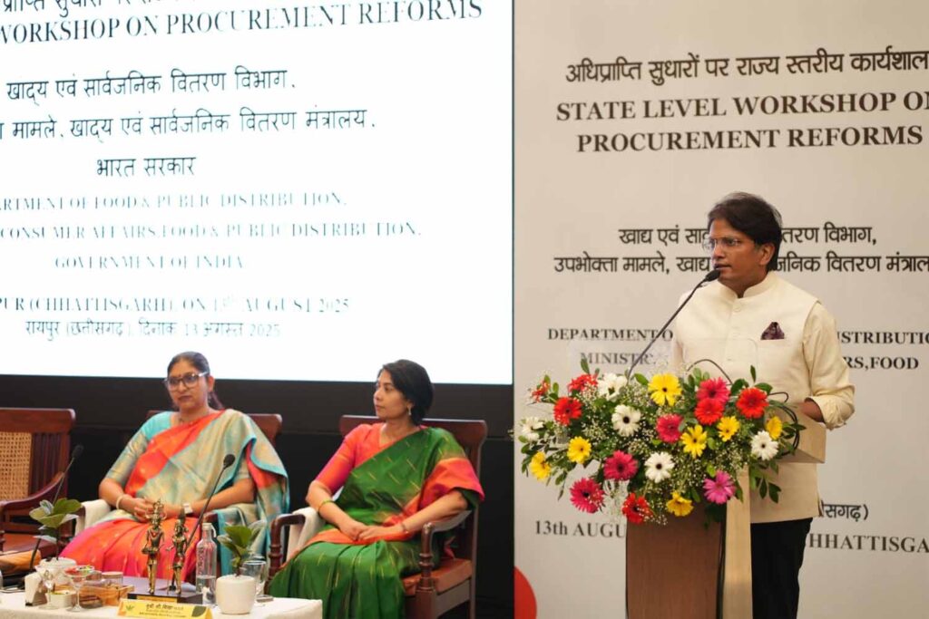 रायपुर 13 अगस्त । केंद्रीय खाद्य और सार्वजनिक वितरण विभाग, भारत सरकार द्वारा आयोजित द्वितीय राज्य स्तरीय अन्न-खरीद सुधार कार्यशाला का आज बुधवार काे छत्तीसगढ़ की राजधानी रायपुर में आयोजन किया गया। इस कार्यशाला का उद्देश्य प्रमुख अन्न-खरीद करने वाले राज्यों में अन्न-खरीद प्रक्रिया में दक्षता, पारदर्शिता और डिजिटल एकीकरण को मजबूत करना है।
