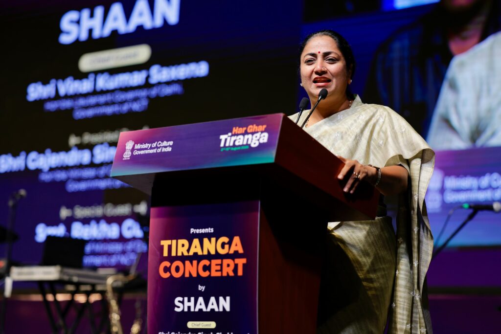 मुख्यमंत्री ने स्वतंत्रता सेनानियों की अमर पंक्ति ‘सरफरोशी की तमन्ना अब हमारे दिल में है’ का उल्लेख कर उपस्थित जनों को प्रेरित किया। मुख्यमंत्री ने कहा कि कि ‘हर घर तिरंगा’ अभियान और भारत मंडपम के इस तिरंगा कॉन्सर्ट में वही जज्बा नए युग में आगे बढ़ रहा है। इस अवसर पर उन्होंने लोकप्रिय गायक शान का स्वागत करते हुए कहा कि उनकी देशभक्ति से ओत-प्रोत धुनें यहां मौजूद हर दिल को एक साथ धड़कने पर विवश कर देंगी।
