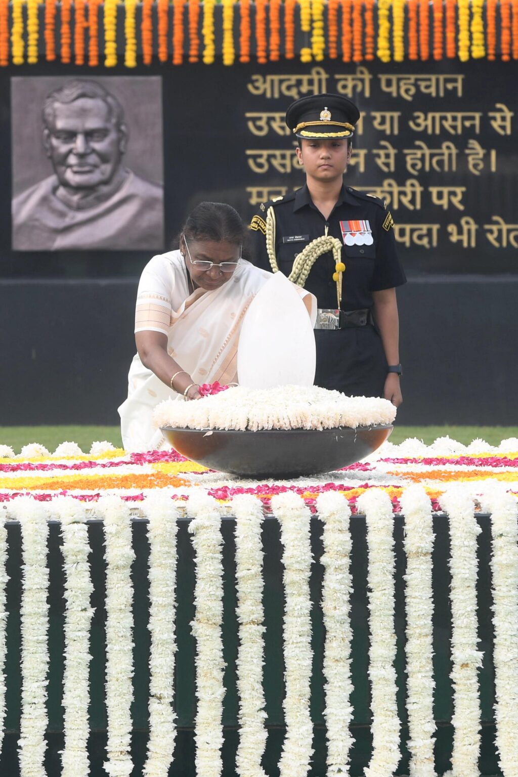 केंद्रीय मंत्रियों किरेन रिजिजू, गजेन्द्र सिंह शेखावत और जद(यू) सांसद संजय झा ने ‘सदैव अटल’ जाकर उन्हें नमन किया। पूर्व प्रधानमंत्री वाजपेयी की दत्तक पुत्री नमिता कौल भट्टाचार्य ने भी श्रद्धांजलि अर्पित की।