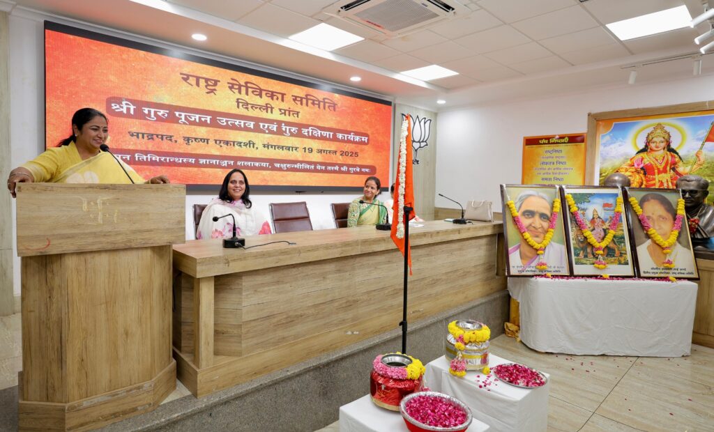 वे आज यहां पंडित पंत मार्ग स्थित भारतीय जनता पार्टी के प्रदेश कार्यालय में राष्ट्र सेविका समिति, दिल्ली प्रांत द्वारा आयोजित ‘श्री गुरु पूजन एवं गुरु दक्षिणा’ कार्यक्रम को संबोधित कर रही थीं। उन्होंने इस अवसर को प्रेरणा का क्षण और सौभाग्यपूर्ण सहभागिता बताया।