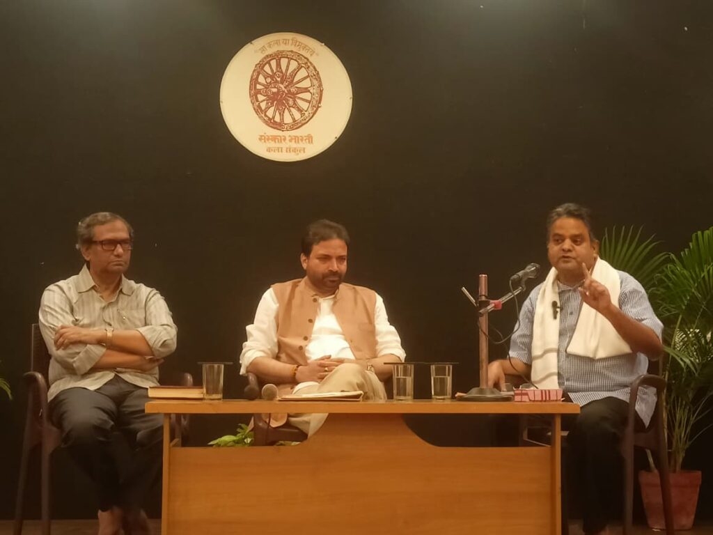 नई दिल्ली। लोक के साथ तनमय हुए बिना कोई कला सार्थक नहीं होती है। उन्होंने कहा कि समाज आज भी अपनी वास्तविकता को दर्शाने वाले लेखन को स्वीकार करने में असहज हो जाता है। जवाहरलाल नेहरू विश्वविद्यालय (जेएनयू) के प्राध्यापक प्रो. रजनीश कुमार मिश्र ने संस्कार भारती के केंद्रीय कार्यालय ‘कला संकुल’ में रविवार को आयाेजित मासिक कला संगोष्ठी में कहा। प्रत्येक माह के अंतिम रविवार को होने वाली यह संगोष्ठी इस बार “नाट्य लेखन : सामाजिक दृष्टि, संभावनाएं और चुनौतियां” विषय पर केन्द्रित रही।
