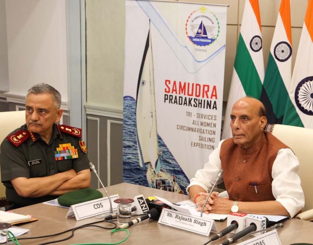 रक्षा मंत्री राजनाथ सिंह ने आज आईएएसवी त्रिवेणी के महिला जलयात्रा अभियान को भारत के इतिहास में एक ऐतिहासिक क्षण बताया, जिसे आने वाली पीढ़ियाँ गर्व के साथ याद रखेंगी। श्री सिंह ने आज मुंबई के ऐतिहासिक गेटवे ऑफ़ इंडिया से भारतीय सेना के नौकायन पोत (आईएएसवी) त्रिवेणी पर सवार होकर ‘समुद्री प्रदक्षिणा’ अभियान को वर्चुअली हरी झंडी दिखाकर रवाना किया। यह तीनों सेनाओं का पहला महिला दल है, जिसमें थलसेना, नौसेना और वायुसेना की 10 महिला अधिकारी शामिल हैं।