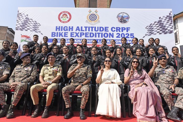 श्रीनगर, 23 सितंबर। सीआरपीएफ के महानिदेशक जीपी सिंह ने मंगलवार को श्रीनगर के ऐतिहासिक लाल चौक से महिला बाइक अभियान के तीसरे संस्करण को हरी झंडी दिखाकर रवाना किया। महिलाओं का यह दल श्रीनगर से खारदुंग ला (17,600 फीट) होते हुए पैंगोंग त्सो तक लगभग 1,400 किलोमीटर की दूरी तय करके वापस आएगा।
