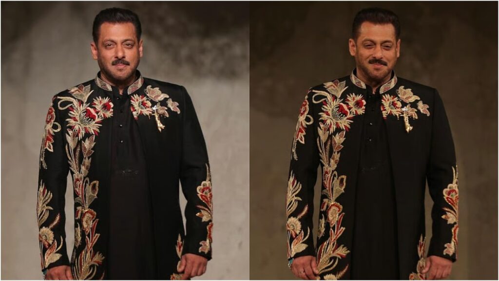 डिजाइनर विक्रम फडणवीस के मुंबई में आयोजित भव्य फैशन शो में सलमान खान ने शोस्टॉपर बनकर रैंप पर ऐसा जलवा बिखेरा कि पूरा हॉल तालियों से गूंज उठा। काले रंग की शेरवानी में सलमान का शाही अंदाज देखते ही बनता था। उनकी एंट्री ने जैसे ही माहौल को बदल दिया, दर्शकों की निगाहें उन्हीं पर ठहर गईं।