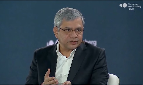 नई दिल्ली, 20 नवंबर। सिंगापुर में आयोजित ब्लूमबर्ग न्यू इकोनॉमी फोरम में भारत सरकार का प्रतिनिधित्व करते हुए केंद्रीय मंत्री अश्विनी वैष्णव ने एक स्थिर, जिम्मेदार और नवाचार आधारित डिजिटल एवं आर्थिक भविष्य के लिए भारत की दृष्टि स्पष्ट की।