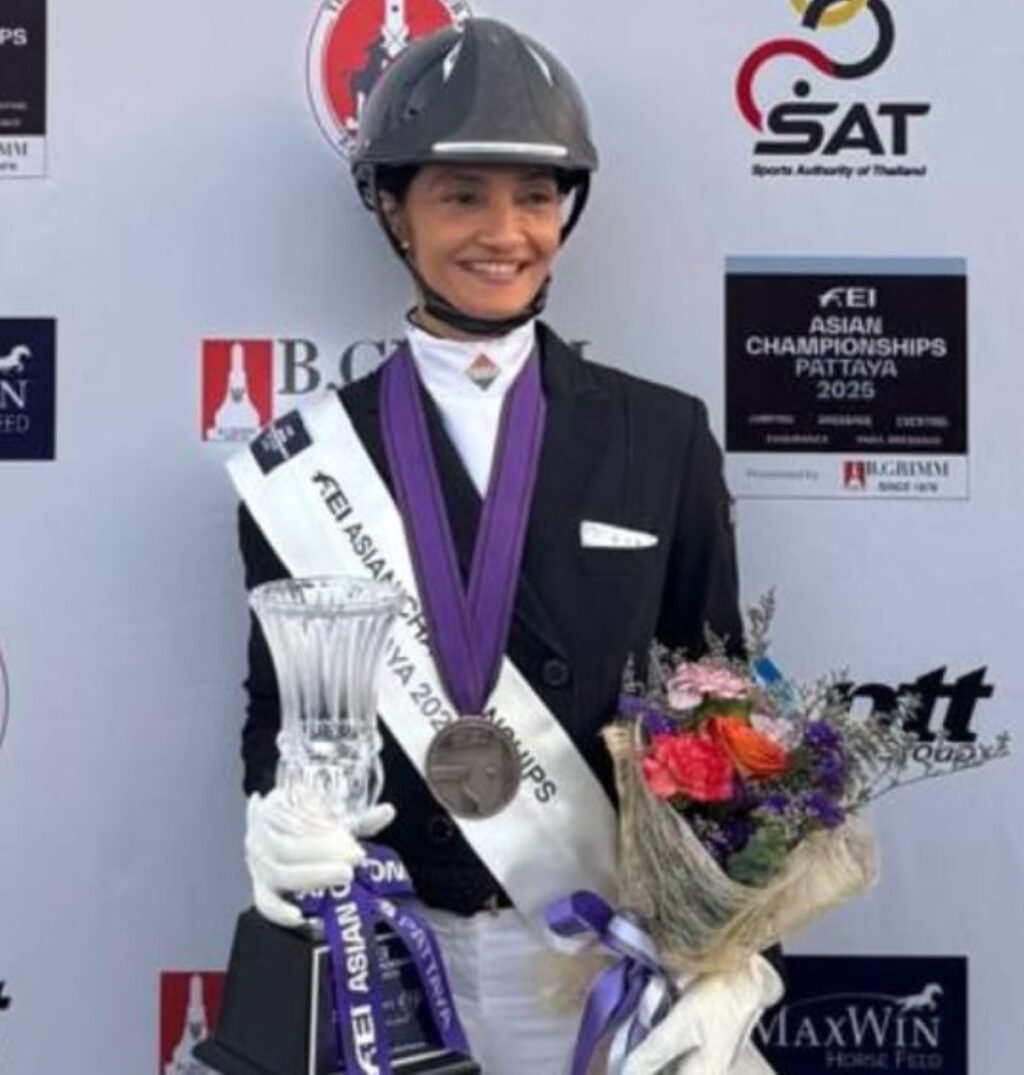 04 दिसंबर । भारत ने थाईलैंड के पट्टाया में एफईआई एशियाई इक्वेस्ट्रियन प्रतियोगिता में रिकॉर्ड पांच पदक के साथ अपना अभियान पूरा किया। आशीष लिमये ने व्यक्तिगत स्पर्धा का स्वर्ण पदक जीता। जबकि शशांक सिंह कटारिया और शशांक कनमुरि की टीम को रजत पदक मिला।