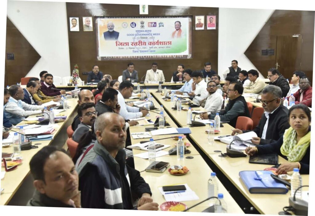 जगदलपुर, 25 दिसम्बर। केंद्र सरकार के निर्देशानुसार 20 से 25 दिसंबर तक सुशासन सप्ताह मनाया जा रहा है, जिसका उद्देश्य जनता की शिकायतों का निवारण और निपटान करना और ग्रामीण स्तर तक सेवा वितरण में सुधार करना है ।नागरिक केंद्रित होने के उद्देश्य से प्रशासन गाँव की ओर नामक अभियान के तहत जिले में सभी पंचायतों में शिविर आयोजित किये जा रहे हैं। इसी के अंतर्गत सुशासन सप्ताह के उपलक्ष्य में मंगलवार को जिला कार्यालय के प्रेरणा सभाकक्ष में जिला स्तरीय कार्यशाला का आयोजन किया गया ।