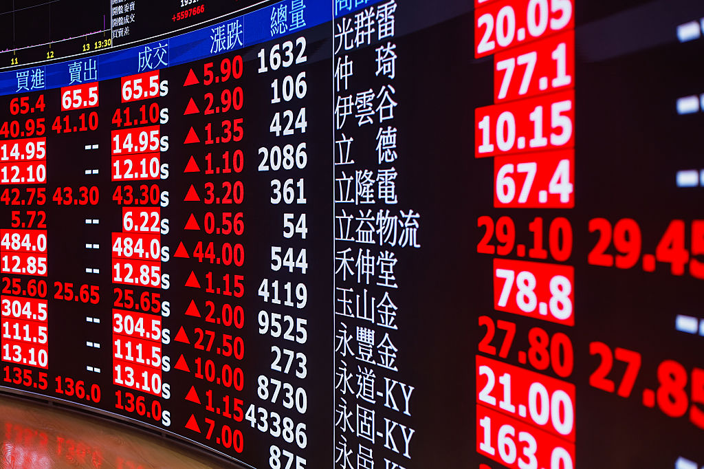 TAIPEI, TAIWAN - APRIL 10: Screens showing surging stock shares at the Taiwan Stock Exchange office, following U.S. President Donald Trump's surprise decision to pause the global tariffs, in Taipei, Taiwan, on April 10, 2025. Stock markets in the Asia-Pacific and Europe such as Taiwan, Japan, South Korea, Singapore, Hong Kong, China, and India have seen surges in shares following Washington's decision to halt the implementation of global high tariffs for 90 days The indexes showing signs of rebound include NIKKEI, KOSPI, HSI, TAIEX, DAX, DJIA and so on. However, tariffs on China remain unchanged. (Photo by Daniel Ceng/Anadolu via Getty Images)