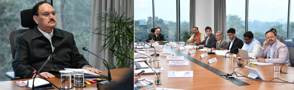 केंद्रीय स्वास्थ्य मंत्री जेपी नड्डा यहां नई दिल्ली में दौरान छत्तीसगढ़ में स्वास्थ्य सेवाओं को और सुदृढ़ बनाने के लिए राज्य के स्वास्थ्य मंत्री श्याम बिहारी जायसवाल, सचिव स्वास्थ्य अमित कटारिया, मिशन संचालक राष्ट्रीय स्वास्थ्य मिशन रणबीर शर्मा व अन्य विभागीय अधिकारियाें के साथ बैठक कर रहे थे। केंद्रीय स्वास्थ्य मंत्री ने राज्य मेें स्वास्थ्य सेवाओं में प्रभावी सुधार की समीक्षा भी की। बैठक में केंद्रीय स्वास्थ्य मंत्री नड्डा ने दवा विनियमन को कड़ा करने, निदान सुविधाओं का विस्तार करने, टेलीमेडिसिन व रोगी-केंद्रित देखभाल को बढ़ावा देने तथा जनभागीदारी को व्यापक रूप से सुनिश्चित करने पर विशेष बल दिया। केंद्रीय मंत्री ने बताया कि देशभर में स्वास्थ्य परामर्श अभियान की शुरुआत की गई है, जिसके माध्यम से औषधि प्रबंधन, निदान सेवाओं और जनस्वास्थ्य पहलों को नई दिशा मिलेगी और इनका प्रभाव सीधे नागरिकों तक पहुंचेगा।