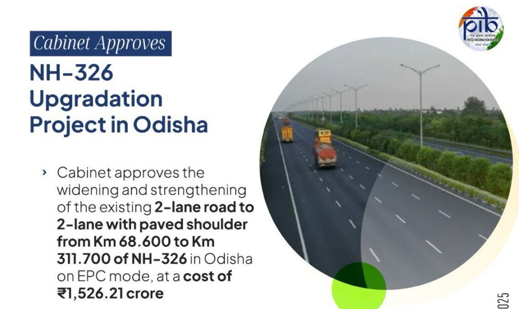 एनएच-326 के अपग्रेडेशन से यात्रा तेज, सुरक्षित और अधिक विश्वसनीय होगी, जिसके परिणामस्वरूप दक्षिणी ओडिशा का समग्र विकास होगा, जिससे विशेष रूप से गजपति, रायगड़ा और कोरापुट जिलों को फायदा होगा। बेहतर सड़क कनेक्टिविटी से स्थानीय समुदायों, उद्योगों, शैक्षणिक संस्थानों और पर्यटन केंद्रों को बाजारों, स्वास्थ्य सेवा और रोज़गार के अवसरों तक बेहतर पहुंच से सीधा फायदा होगा, जिससे क्षेत्र के समावेशी विकास में योगदान मिलेगा।
