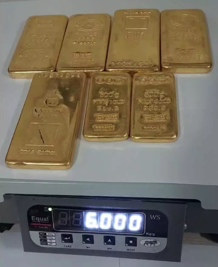 अधिकारी ने कहा, दो अजरबैजानी नागरिक अपने बैग में छिपाकर 2.99 करोड़ रुपए मूल्य का 6 किलो सोना लेकर दुबई से पहुंचे।