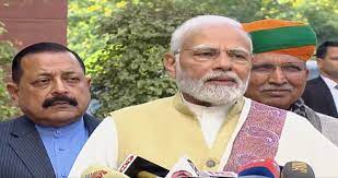 प्रधानमंत्री नरेन्द्र मोदी बजट सत्र शुरू होने से पहले संसद भवन पहुंचे। सत्र प्रारंभ होने के पूर्व उन्होंने कहा कि यह नारी सम्मान का अवसर है। भारत के वर्तमान राष्ट्रपति जी के सम्मान का दिन है।