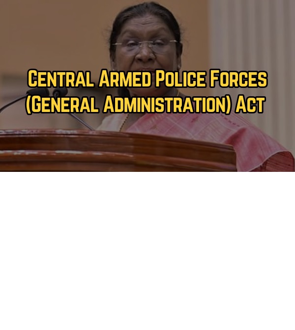 10 अप्रैल। राष्ट्रपति द्रौपदी मुर्मू द्वारा कल विधेयक को मंजूरी दिए जाने के बाद सरकार ने केंद्रीय सशस्त्र पुलिस बल (सामान्य प्रशासन) अधिनियम, 2026 को अधिसूचित कर दिया है। यह विधेयक राजपत्र में प्रकाशित हो चुका है।