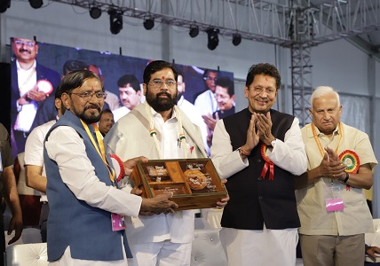 वर्धा । महात्मा गांधी और विनोबा भावे की कर्मभूमि वर्धा में आयोजित 96वें अखिल भारतीय मराठी साहित्य सम्मेलन के उद्घाटन समारोह मैं संबोधित करते हुए महाराष्ट्र के मुख्यमंत्री एकनाथ शिंदे ने कहा कि वर्धा नगरी साहित्य की पंढरी बन गई है। मराठी भाषा चमत्कार की भाषा है। मराठी में सांस्कृतिक विरासत के चलते यह विश्व भर में बोली जाती है ।हमें साहित्य, संस्कृति और परंपरा को आगे बढ़ाने की आवश्यकता है।