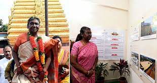मंदिर के समक्ष उनके स्वागत के लिए लोग गाजे-बाजे के साथ जनजातीय नृत्य करते दिखे। राष्ट्रपति कुछ समय के लिए उनके निकट रुकीं, फिर आगे बढ़ीं। इस दौरान उनकी पुत्री भी साथ दिखीं।